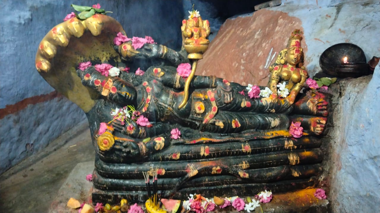 పద్మనాభుడు యోగ నిద్రలో విష్ణువు, అనంత పాముపై పడుకుని ఉన్నాడు. అతనిని 'గర్భోదకాశాయి' అని పిలుస్తారు- ఎవరి నాభి నుండి కమలం పుడుతుందో, దాని నుండి బ్రహ్మ ఉనికిలోకి వస్తాడు.